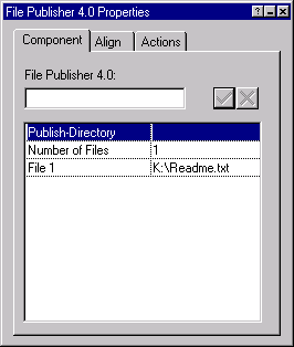 This component is used to publish additional files with a project. These files must be located on the local system. Optionally, you can choose a directory relative to the Publish/Stage directory where the files will be published. In this example, leaving the Publish-Directory field empty will result in publishing directly to the Publish/Stage root directory.