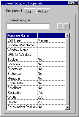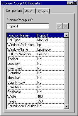 The “BEFORE” image is what you’ll initially see once you’ve placed the BrowserPopup on your page. The “AFTER” image shows you the parameters I entered into the BrowserPopup dialog-window:
